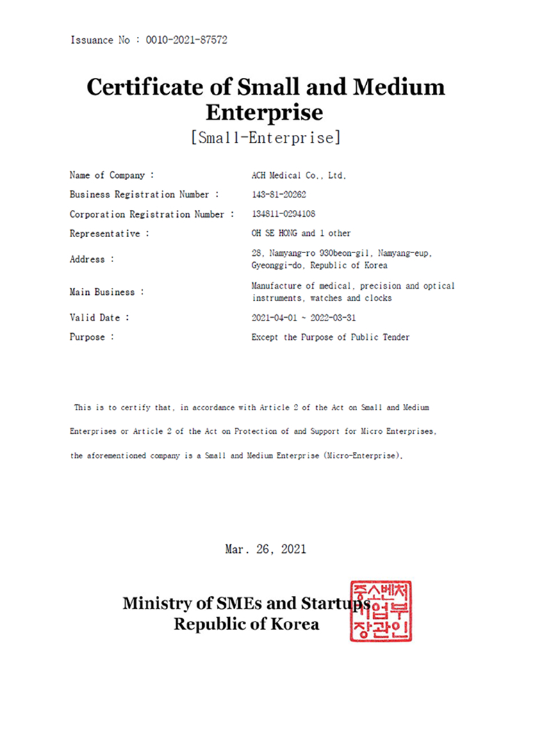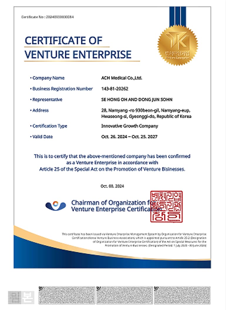 自2008年成立以来,ACH Medical始终致力于通过高品质的产品和服务支持临床医生,以维护人们的健康。我们的首要任务是确保产品质量,以满足所有客户的需求。同时,我们承诺与全球研究机构和大学合作,持续开发更先进的产品。我们致力于成为一家可靠的公司,提供创新的产品和服务,以改善患者的健康。