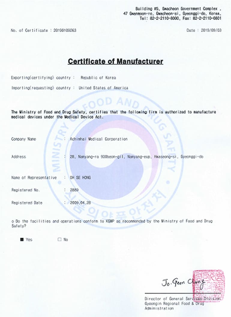 KFDA制造证书 -